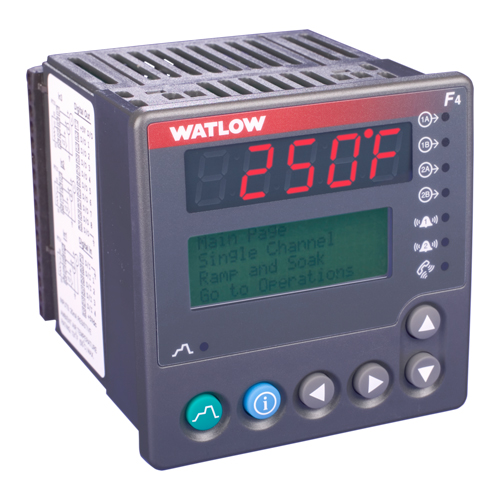 Bộ điều khiển nhiệt độ dốc công nghiệp SERIES F4 1⁄4 DIN đáp ứng yêu cầu của các ứng dụng xử lý bộ điều khiển ngâm đoạn dốc khắt khe nhất. Dễ dàng thiết lập và vận hành, các tính năng lập trình của bộ điều khiển ngâm dốc và khả năng hiệu suất đã được chứng minh là lý tưởng phù hợp cho các ứng dụng buồng môi trường hoặc lò nung và lò nướng. Có sẵn phiên bản kênh đơn và kênh đôi. Có giá cạnh tranh, bộ điều khiển nhiệt độ dốc SERIES F4 có màn hình hiển thị giao diện LCD 4 dòng, độ nét cao để lập trình hồ sơ và cấu hình bộ điều khiển nhanh chóng và dễ dàng. Bộ vi xử lý 16 bit của nó đảm bảo độ chính xác và mang lại những lợi thế về hiệu suất mà bạn có thể tin tưởng từ bộ điều khiển Watlow.