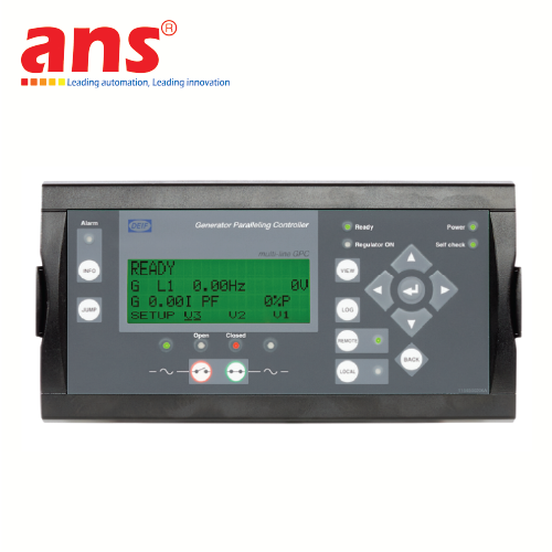 A multi-function component, the GPC-3 features protection, measurements, engine control and engine protection and communicates with all PLC and SCADA systems. Values and alarms are displayed on a large LCD screen.