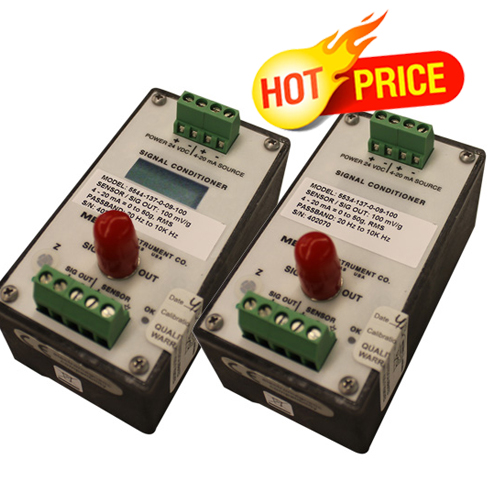 Các bộ điều chỉnh tín hiệu vận tốc này chấp nhận tín hiệu từ cảm biến vận tốc được gắn trên vỏ máy và tạo ra đầu ra nguồn dòng 4-20 mA tỷ lệ với biến đo được. Mạch phát hiện đáp ứng với rung động RMS thực nhưng đầu ra có thể được chia tỷ lệ thành đơn vị đỉnh hoặc RMS. Đèn LED màu xanh lá cây cho biết cảm biến và tính toàn vẹn của cáp. Trong trường hợp hỏng cảm biến, đèn LED sẽ tắt và dòng điện đầu ra được điều khiển dưới 3,6 mA, do đó báo hiệu sự cố. Một đầu nối BNC cho phép truy cập vào tín hiệu đầu vào được đệm để phân tích cục bộ. Các tính năng tùy chọn cho một trong hai mô hình bao gồm bộ lọc và cách ly điện giữa đầu vào, đầu ra và nguồn điện.