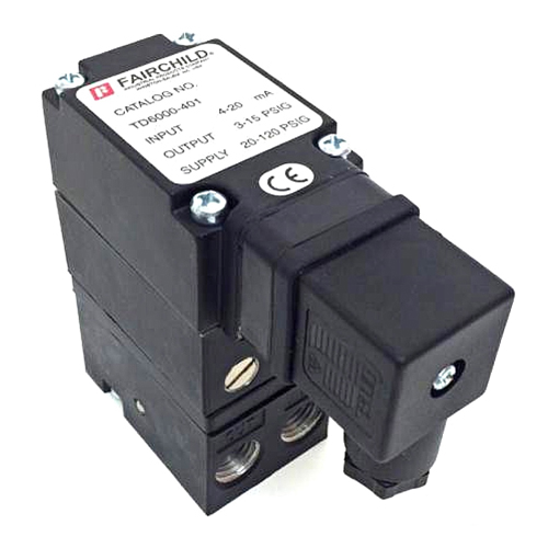 The Fairchild Model T6000 Transducer converts a DC current or voltage input signal to a linearly proportional pneumatic output. The T6000 is designed for precision applications, providing maximum versatility. Its modular construction allows use in explosion-proof, rack, wall, pipe, panel, DIN rail or manifold configurations. Servicing or calibration is quick and easy, and its compact size reduces weight and space requirements.